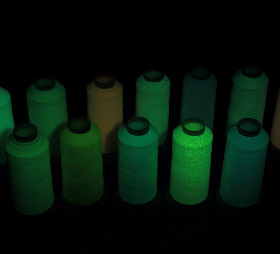 我司生产的夜光绣花线是利用稀土发光材料制成的功能性环保新材料。该纤维是以纺丝原料为基体,采用长余辉稀土铝酸盐发光材料,经特种纺丝制成夜光纤维。夜光纤维吸收可见光10分钟,便能将光能蓄贮于纤维之中,在黑暗状态下持续发光10小时以上。在有光照时,夜光纤维呈现出各种颜色,如红色、黄色、绿色、蓝色等。在黑暗中,夜光纤维发出各种色光,如红光、黄光、蓝光、绿光等。夜光纤维色彩绚丽,且不需染色,是环保高效的高科技产品。